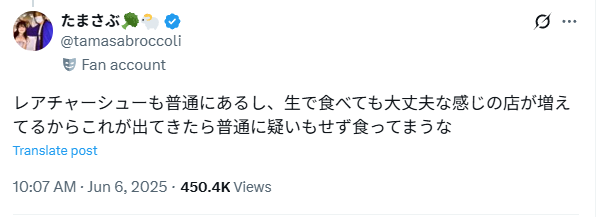 Xで「めっちゃチャーシュー生じゃね?」とは思ったんだよな」と投稿したX民が数日後、人生初のカンピロバクターに当たったという投稿が話題を呼んでいます。
